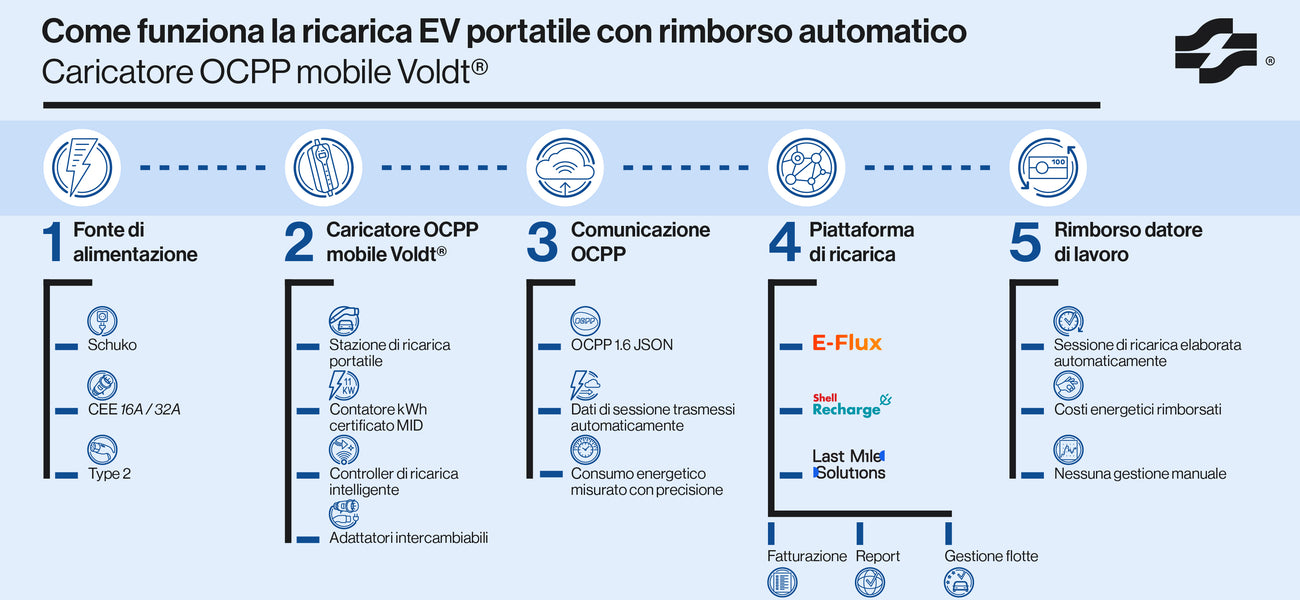 1. Cosa differenzia il caricabatterie Voldt® Mobile OCPP da un cavo di ricarica standard?